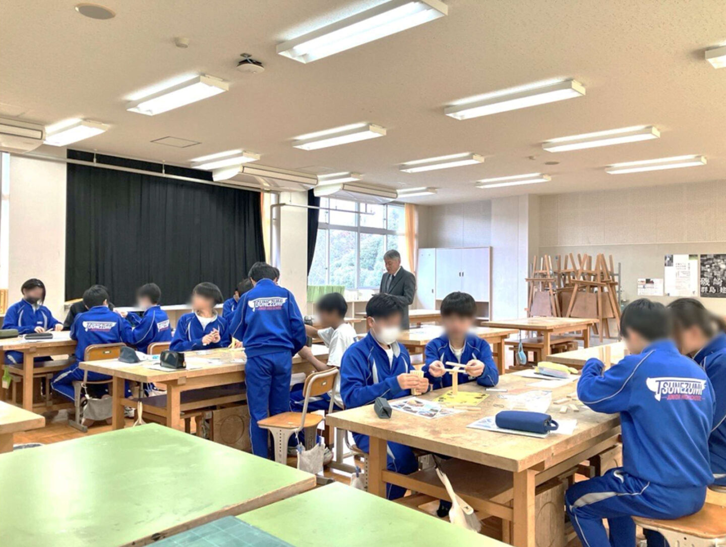 おなじみの、積み木ワークで、わかりづらい施行管理のお仕事を中学生達に体感していただきました。